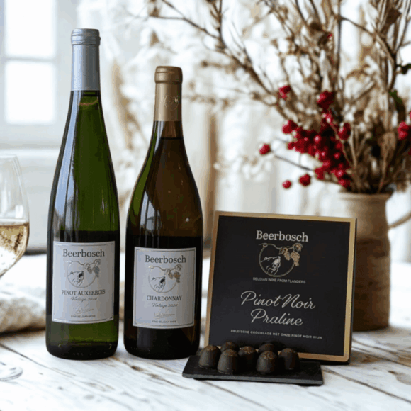 Deze Eau de Vie wordt verkregen uit de Pinot Noir druiven afkomstig uit onze eigen wijngaard.